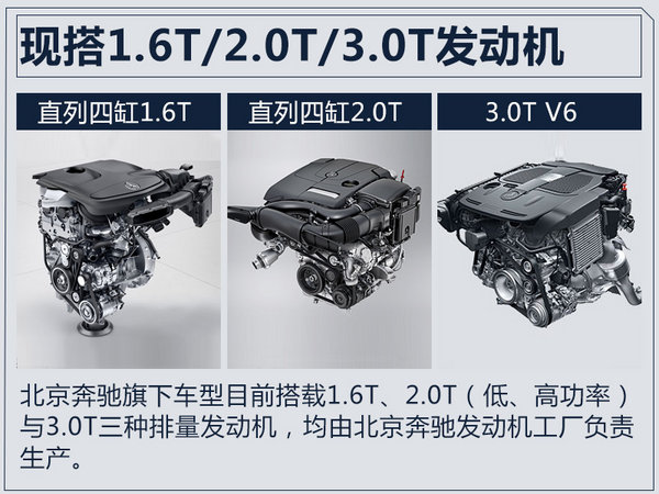 北京奔驰旗下车型目前搭载1.6T、2.0T(低、高功率)与3.0T发动机,最大功率分别为115kW、135kW与180kW、200kW,对应的峰值扭矩分别为250Nm、300Nm与370Nm、400Nm。根据此前消息,到2020年,北京奔驰发动机工厂产能将从现有的50万台/年扩充至75万台/年。