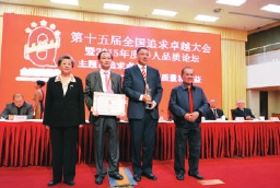 2015年,一汽解放锡柴党委书记、厂长钱恒荣(右二)参加全国质量奖颁奖典礼。