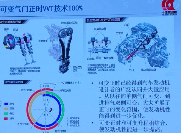 可变气门正时VVT技术为什么好?因为可以智能改变正时,否则就会按最大扭矩,或者按最大的功率设计气门开启时刻。因为发动机的工作是随着速度和负荷时刻改变的,一个设计点并不能满足全部要求,难免有些地方做的不到位,而可变正时可满足这个要求,这也是当今发动机的一个主流方向。此次参评的发动机100%采用了该技术。