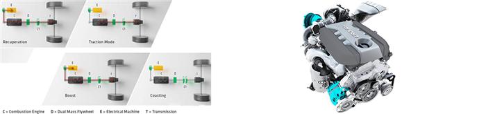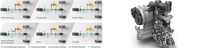 大陆和舍弗勒共同研发的GTC II基于P2架构,将BSG设置在发动机和变速箱之间,采用电机独立驱动,在滑行和下坡路段可以关闭发动机,减少发动机的阻力,滑行更远的距离以及节省更多的燃油。