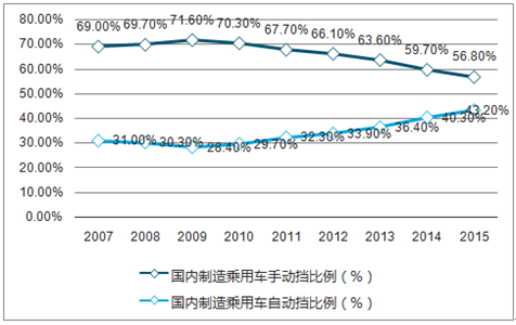 自动变速器在乘用车市场的渗透率不断提高,据推算,2007年至2015年自动挡占国内制造乘用车销量的比例由31.0%上升至43.2%,手动挡的比例则由69.0%下降至56.8%。未来自动变速器的比例还将持续上升。目前自动变速器在国内存在产能缺口,包括大众、上汽、长城等在内的各大主机厂以及主流的变速器厂商比如采埃孚、格特拉克、捷特科等均在国内进行扩产,对上游的齿轮件产品需求形成显著的拉动作用。