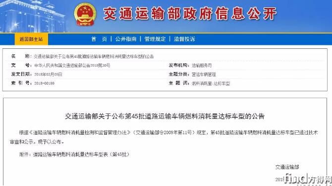 3月1日,交通部发布第45批道路运输车辆燃料消耗量达标车型的公告。这也是2018年的第一批燃油公告。经统计,本批燃油公告中,一共有超350款客车产品上榜,涉及宇通、中通、厦门金龙等生产企业;有近4000款货车产品上榜,涉及北汽福田、东风汽车、安徽江淮等生产企业。