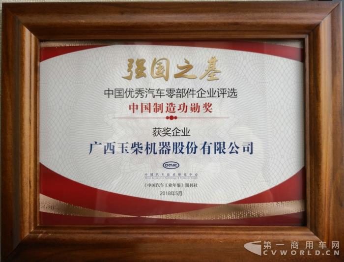 5月30日至31,2018年“一带一路”汽车产业发展国际论坛暨《中国汽车零部件产业发展研究》成果发布会在西安成功召开。期间,为树立标杆、宣传领先、打造品牌,夯实汽车产业发展根基,发布会同期举行了“强国之基—中国优秀汽车零部件企业”颁奖典礼,隆重揭晓汽车零部件产业十大细分领域的优秀企业名单。玉柴股份一举夺得重量级荣誉“中国制造功勋奖”。