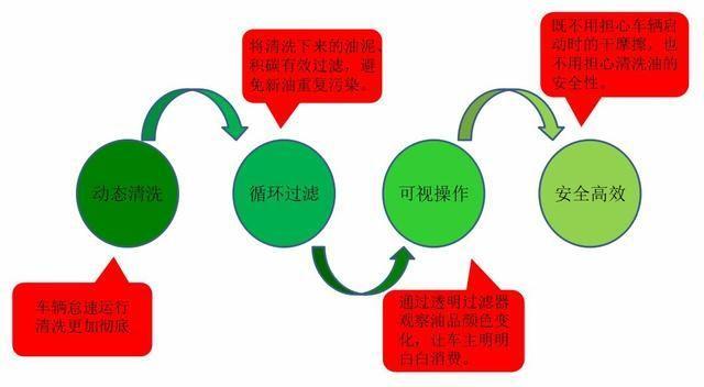 5、动态循环清洗,油泥、污垢无处可逃(油泥、污垢在不断的循环中被过滤到机器中,保证发动机内无残留)。