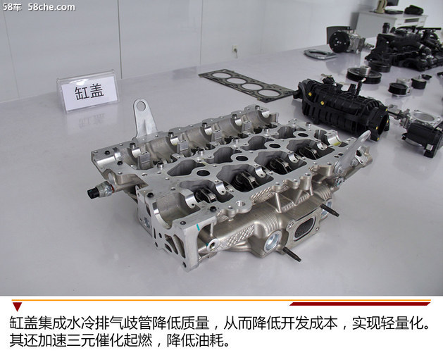 缸盖集成水冷排气歧管降低质量,从而降低开发成本,实现轻量化。其还加速三元催化起燃,改善冷启动排放,缩小空燃比加浓区域,降低油耗。