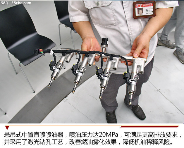 悬吊式中置直喷喷油器,喷油压力达20MPa,可满足更高排放要求,并采用了激光钻孔工艺,改善燃油雾化效果,降低机油稀释风险。此外,该机构与缸盖无硬性接触,切断噪音传递路径,降低了喷油器工作噪音。