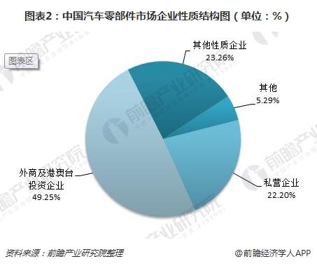 据不完全统计,零部件企业总数超过10000家(规模企业不到6000家)。我国汽车零部件制造企业中,私营企业和外资企业占有较大比重,分别为49.25%和22.20%。而股份制企业、国有企业占比相对较少。