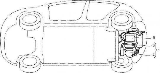 在马自达看来,结构紧凑的转子发动机拿来做增程器实在再完美不过了。为了更好地利用车内空间,马自达希望将转子增程器水平安装在后面的后备厢地板下(图中的序号2和3)。为了照顾转子发动机的烧机油特性,马自达的工程师们还专门为其设计了润滑油喷油嘴的位置。
