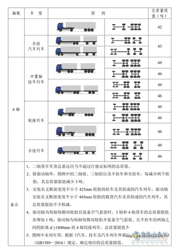 5.未提及车型,根据《汽车、挂车及汽车列车外廓尺寸、轴荷及质量限值》(GB1589—2016)规定,确定相应的总质量限值。