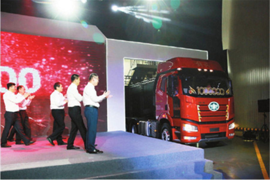 7月15日,以“百万跨越信以致远”为主题的一汽解放第100万辆J6下线仪式在一汽解放卡车厂总装车间举行。