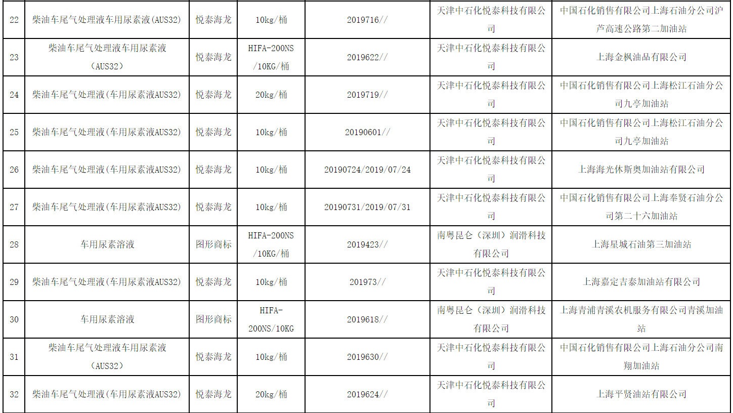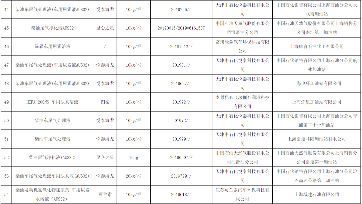 中国质量新闻网讯 12月30日,上海市市场监督管理局官网发布2019年上海市柴油发动机尾气处理液产品质量监督抽查结果。近期,上海市市场监督管理局对本市销售的柴油发动机尾气处理液(以下简称车用尿素)产品质量进行了监督抽查。本次抽查了60批次产品,经检验,不合格5批次。