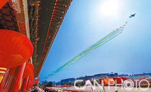 新中国成立70周年阅兵式上,动力轰鸣,现代化空中梯队驭风翱翔。