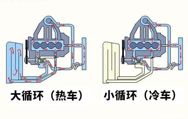 两种循环模式通过节温器的开闭来切换。