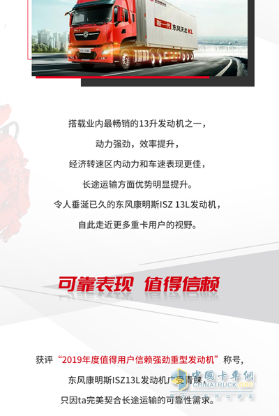 东风康明斯ISZ560发动机,出色的动力与油耗,助力用户轻松实现降本增效。