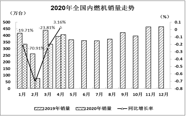 近日,中国内燃机工业协会统计工作部发布《2020年4月内燃机行业市场经济运行综述》。数据显示,4月份,全国内燃机销量恢复至常年水平,实现同比、环比双增长;细分市场方面,商用车用内燃机在连续两个月的同比下滑之后,4月扭转颓势实现了25.34%的正增长,目前1-4月累计降幅仅7.78%。