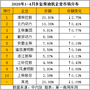 与此同时,备受大家关注的柴油机和多缸柴油机市场格局也进一步发生变化。谁排名上升,谁排名下降?谁份额增长,谁份额缩窄了呢?下面,请看第一商用车网的报道。