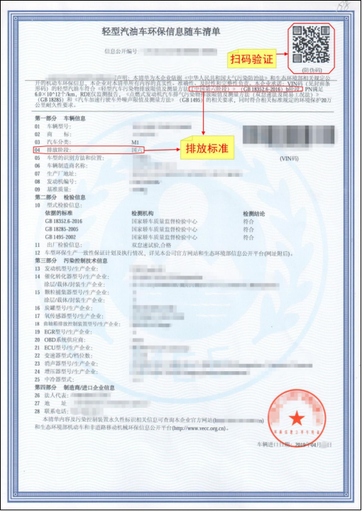 (三)机动车环保随车清单:
